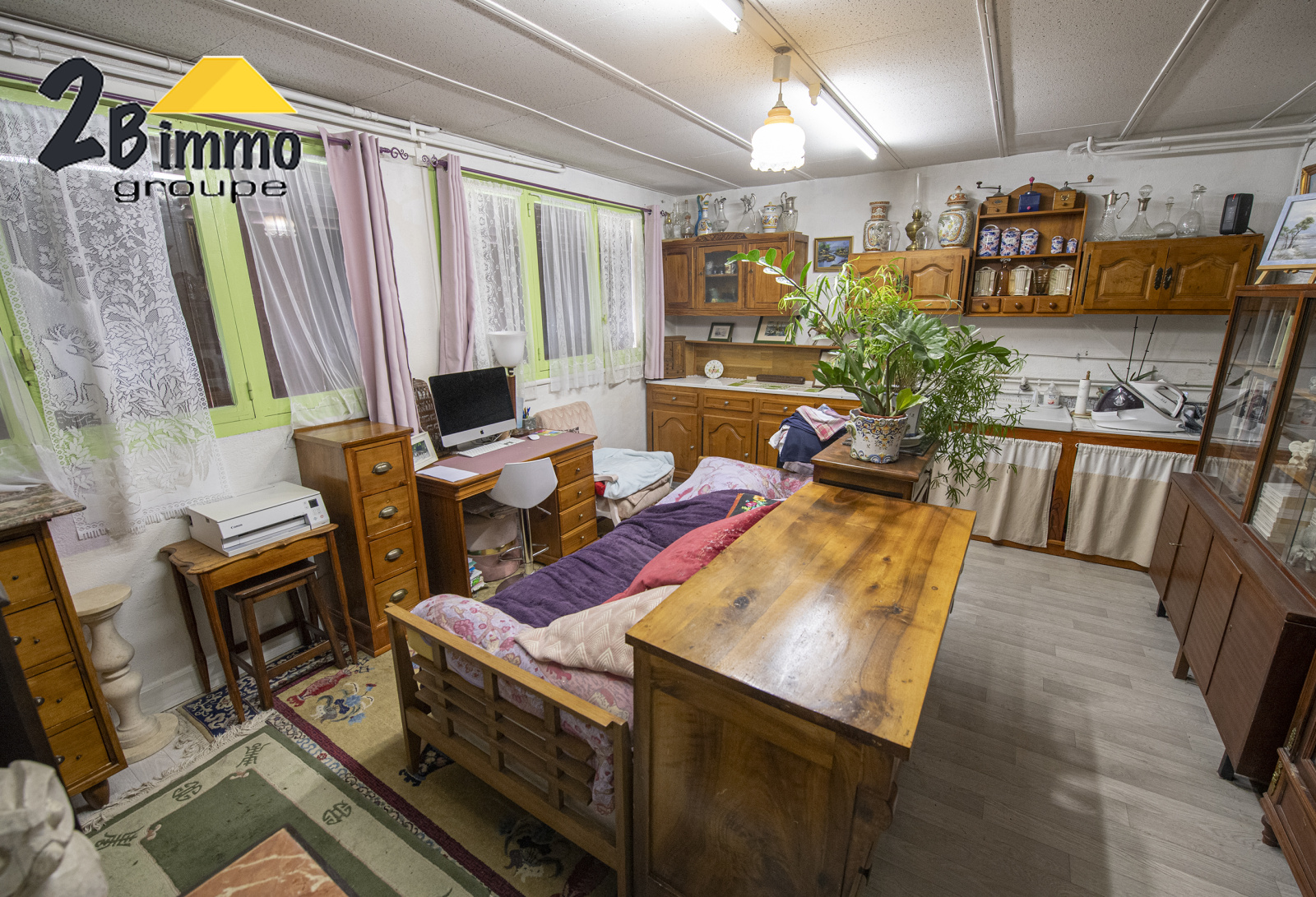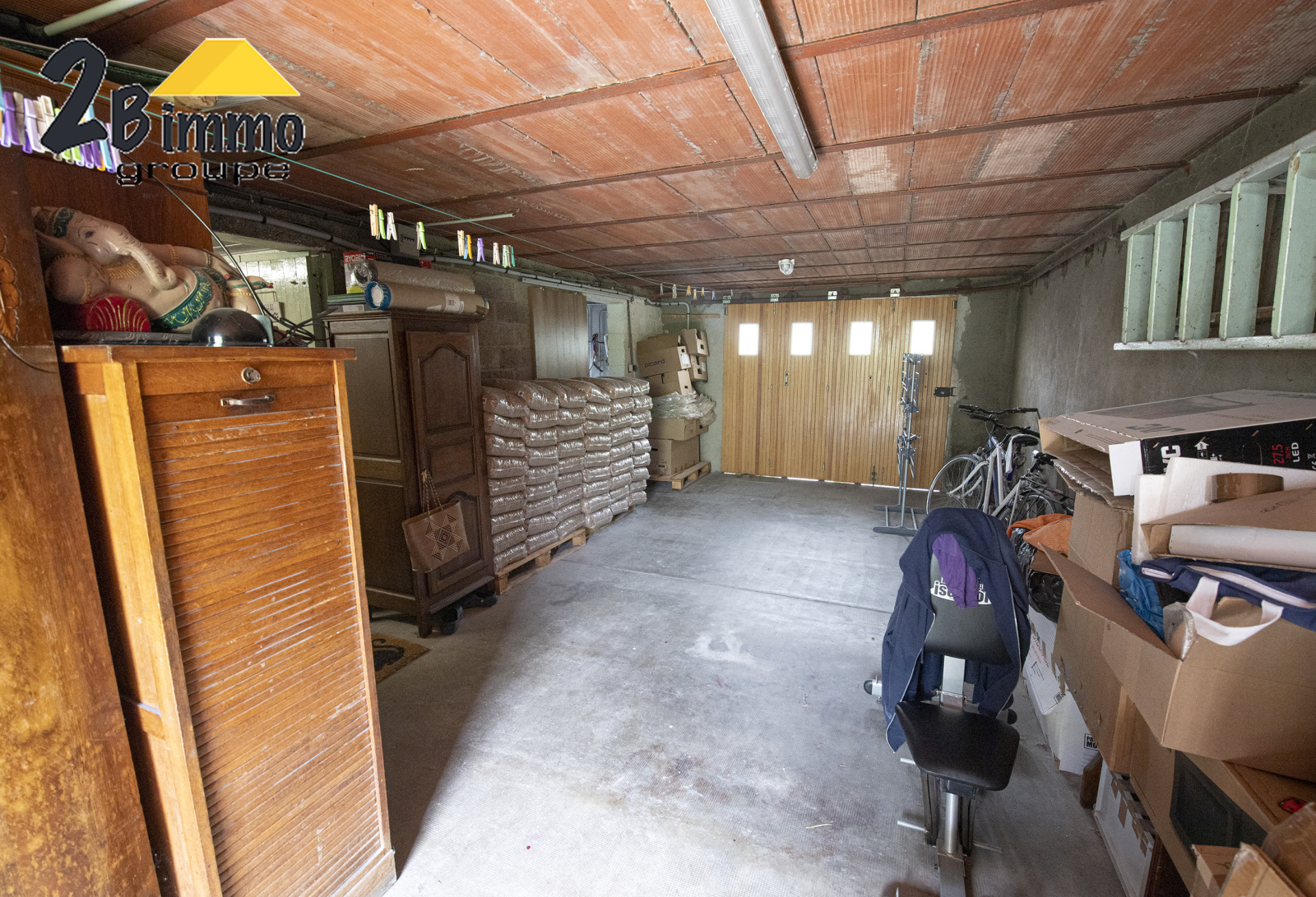 Sur rdj grand garage 2 VOITURES . Salon avec coin cuisine . Débarras chaufferie. buanderie
