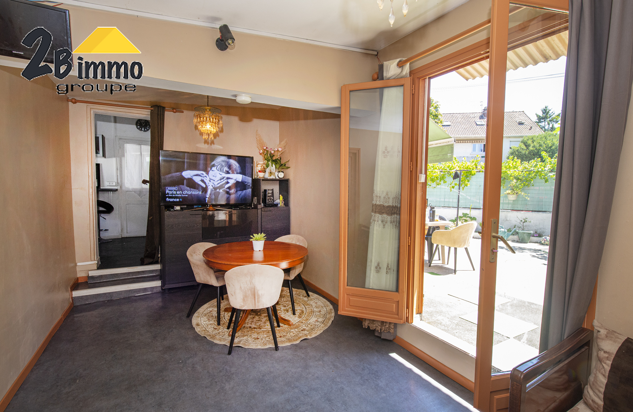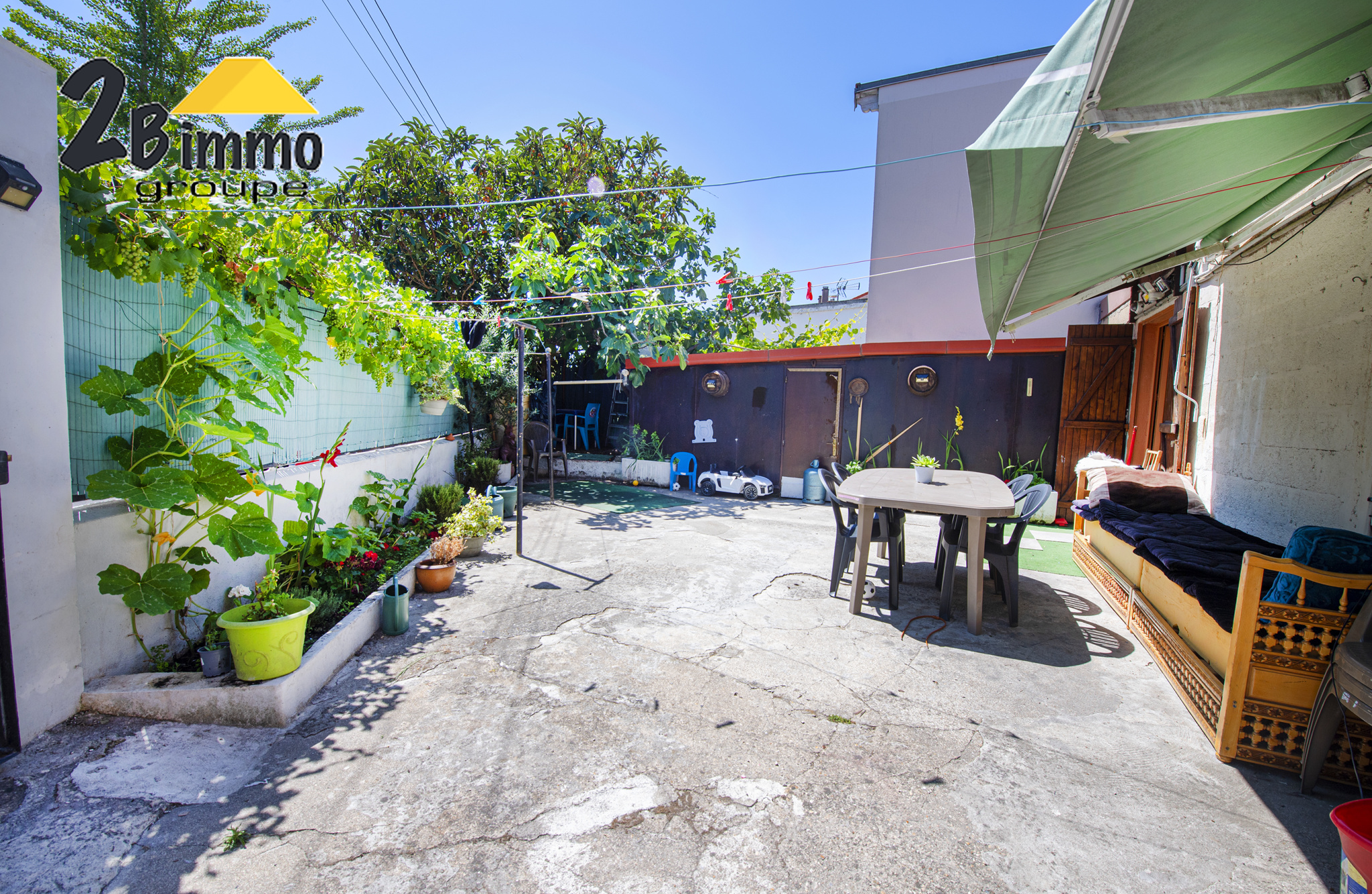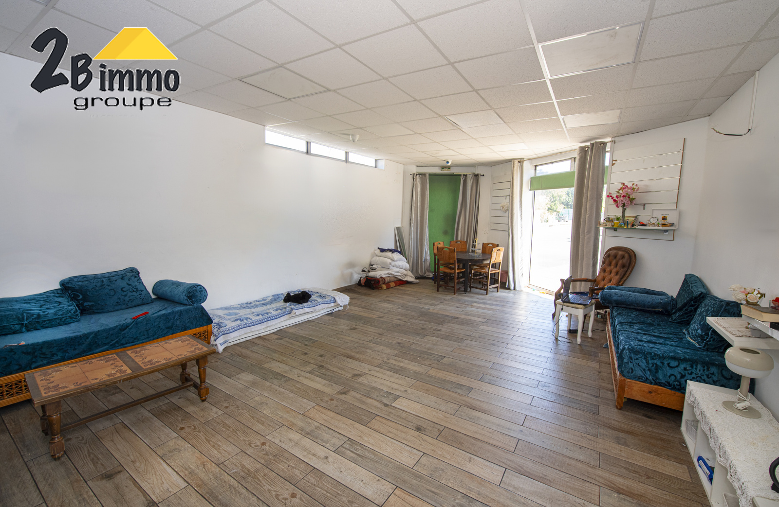 Au rez-de-chaussée, d'une boutique (local commercial libre), d'une cuisine, d'un salon, d'une salle de bains avec wc et d'une grande cour exposée sud.